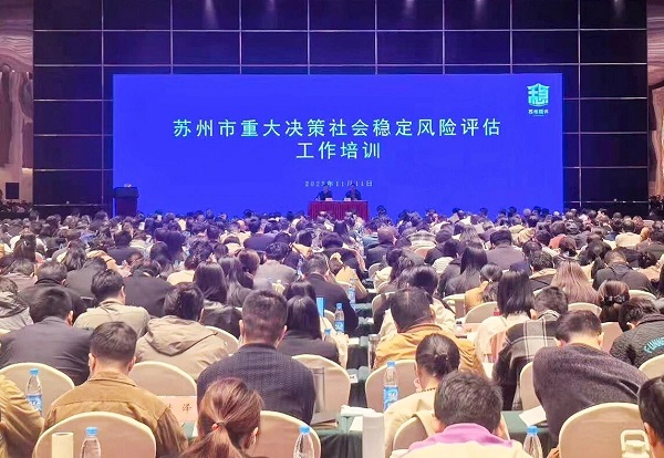 11月11日至12日,苏州市委政法委举办2025年度重大决策社会稳定风险评估培训会,市委政法委副书记秦川主持培训会并作开班动员。市有关单位、各县级市(区)、各镇(街道)稳评工作负责同志,市级稳评专家库成员和全市196家第三方稳评机构从业人员等共1000余人参加。