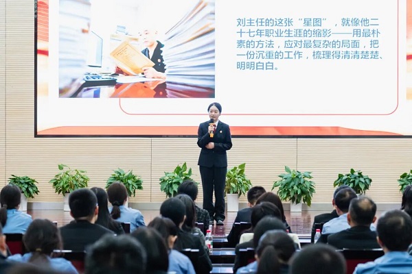 此次宣讲活动,让我深受洗礼。当我手捧鲜花走向刘金桥同志时,看到他眼中闪烁的欣慰光芒,我深深体会到,这不仅是一次事迹宣讲,更是新老两代政法人的深情交汇。老政法人用毕生坚守书写的忠诚与担当,正如明灯照亮我们前行的路。我们将紧握这根接力棒,让朴实坚定、司法为民的老政法精神,在新时代焕发新的光彩。