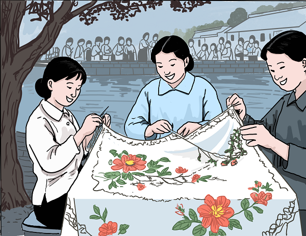 图为常熟花边制作场景。戴晓洁作