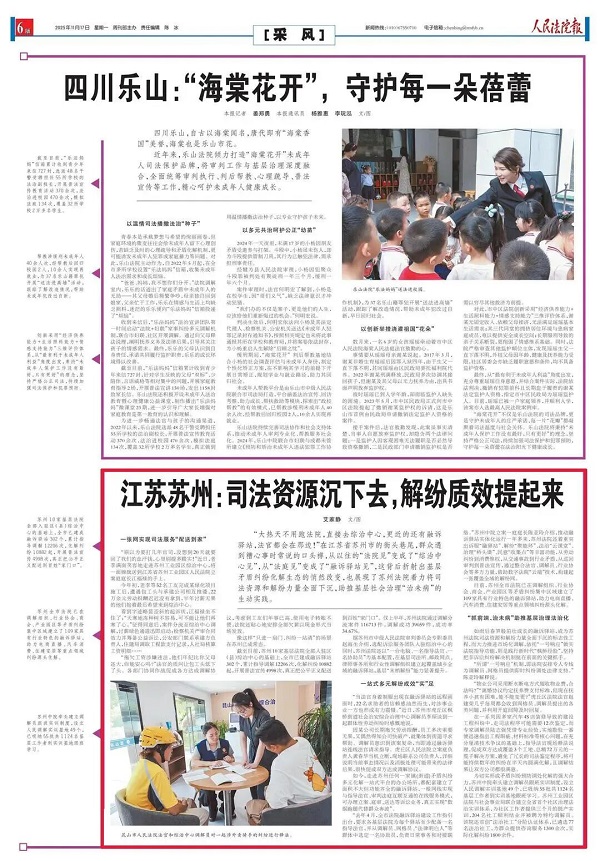 苏州全市法院已在调解组织、行业协会、商会、产业园区等矛盾纠纷集中区域建立了109家具有行业特色的融诉驿站,助力电商直播、汽车消费、住建安居等重点领域纠纷源头化解。