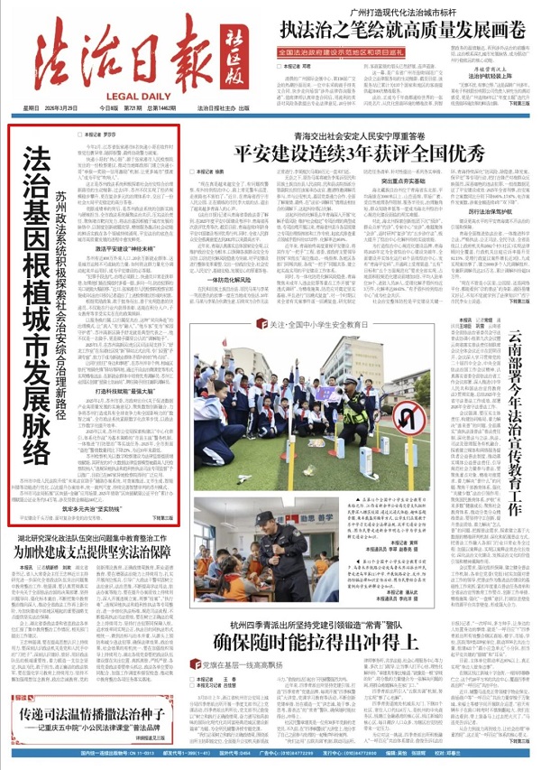 在社会治安综合治理效能持续提升的同时,苏州也在不断夯实法治根基,将制度保障与基层实践深度融合,为平安建设提供坚实法治支撑。